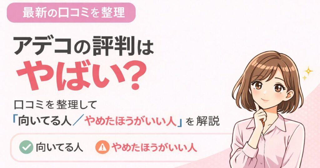 アデコの評判はやばい?Xなどの口コミを整理し、良い点・悪い点と対策を解説。向いてる人/やめたほうがいい人、キャリアシード、IT系(Modis)の不安もまとめます。