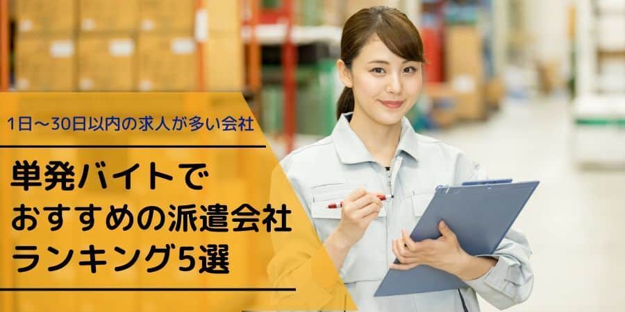 単発バイトでおすすめの派遣会社ランキング5選|1日〜30日以内の求人が多い会社は?